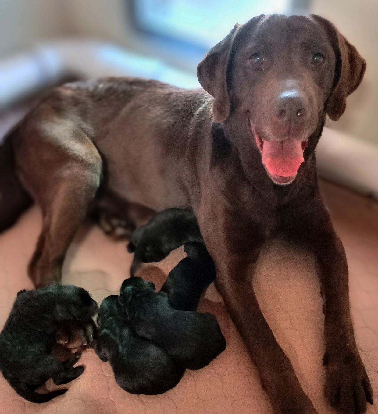 Raising black, yellow and chocolate lab puppies.